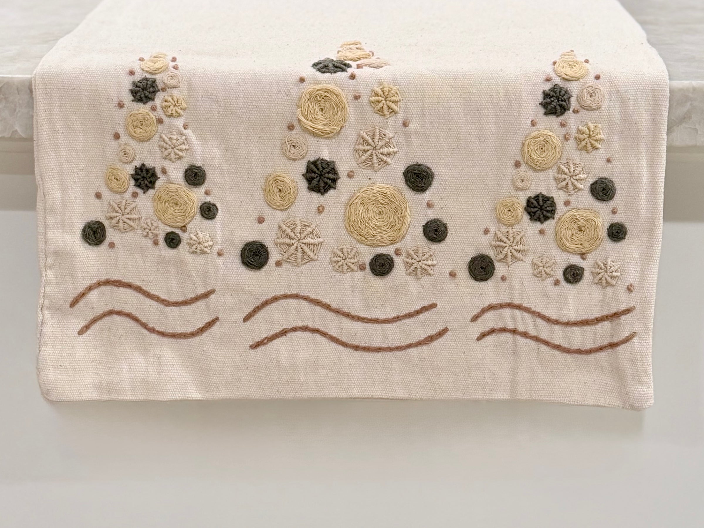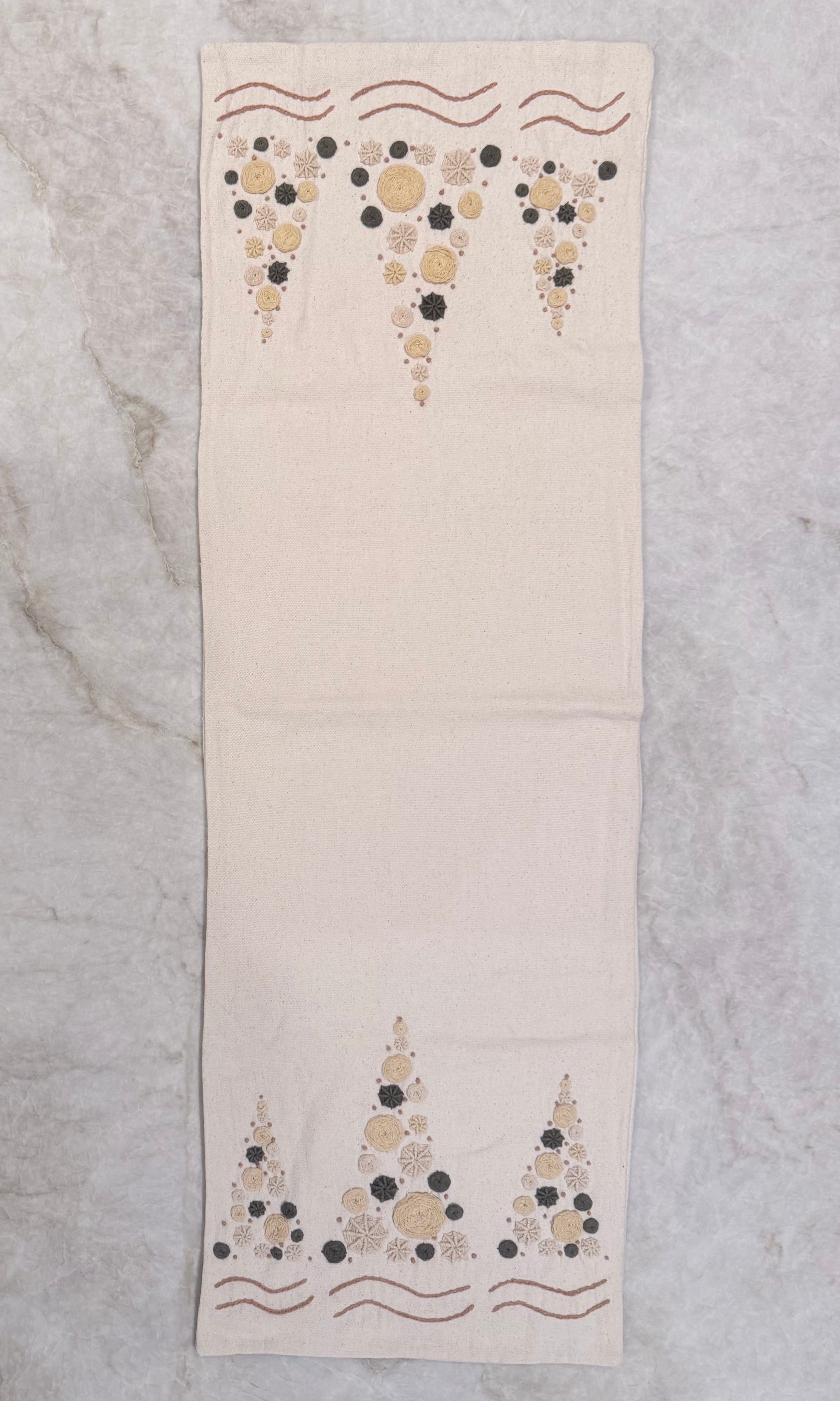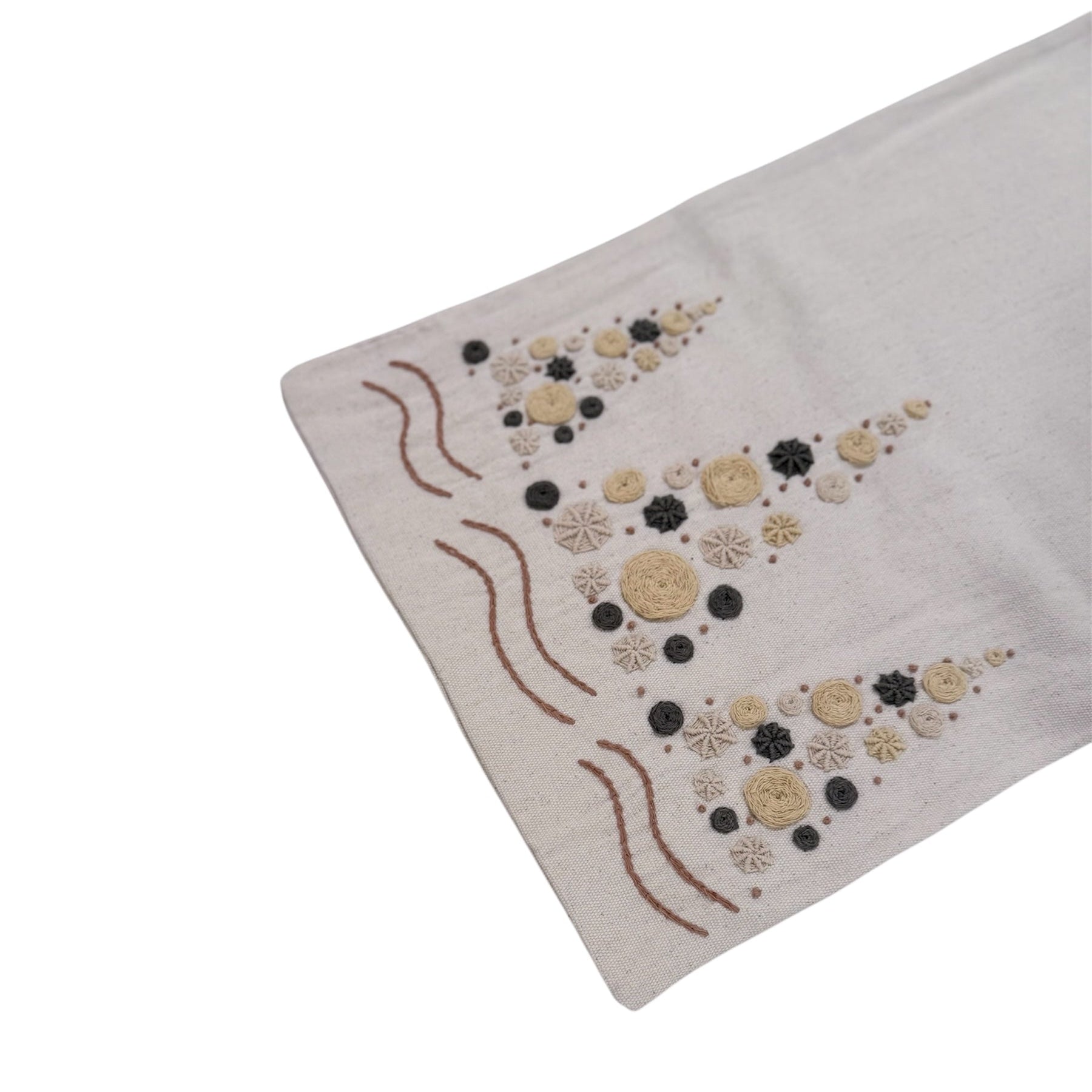 Bring the warmth of tradition to your table with this "special edition" hand-stitched runner, inspired by the artisans of Ba Kaeo village. Each cone-shaped tree is adorned with intricate tribal patterns in earthy tones, showcasing the artisans’ unique stitch-work passed down through generations. A striking seasonal centerpiece, this runner is more than décor—it’s a story of heritage and craft that’s sure to spark conversation around your table or living space.